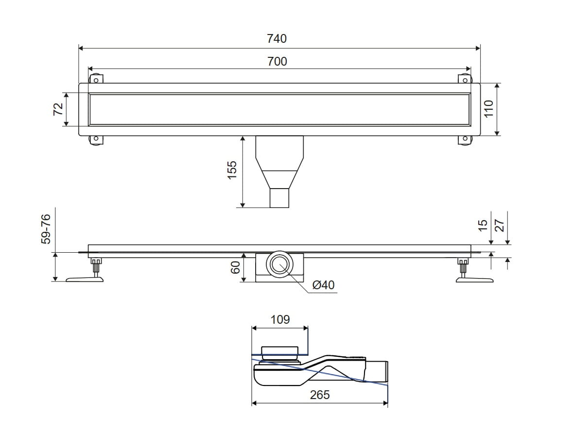 STILIO ODPŁYW LINIOWY 70 CM UNIWERSALNY