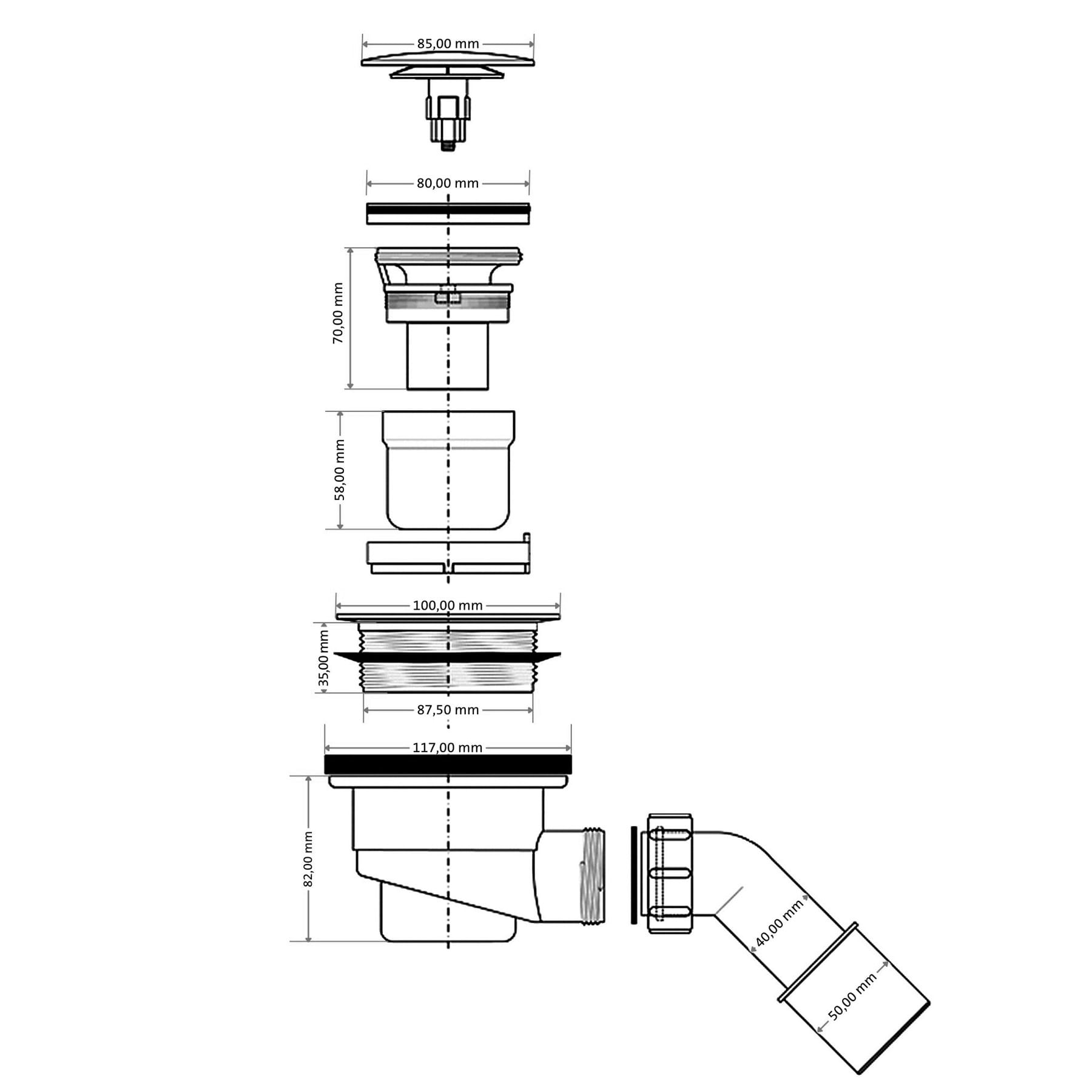 SYFON BRODZIKOWY 9-CM CHROM "CLICK-CLACK" WYS. 6 CM MCALPINE