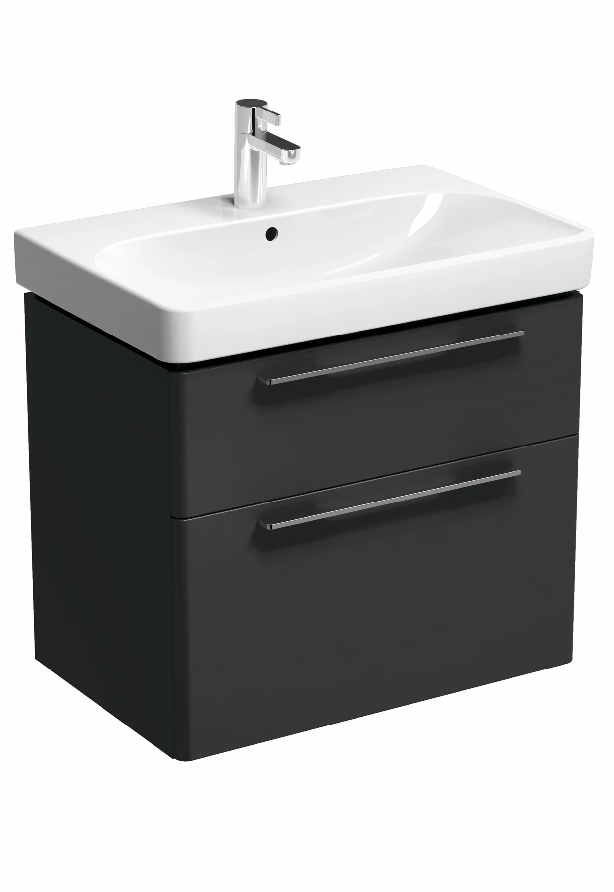 Szafka pod umywalkę KOŁO Traffic stanie się odpowiednim uzupełnieniem łazienki o średnim metrażu. Dzięki wykonaniu z trwałej płyty wilgocioodpornej, mebel jest niewrażliwy na działanie pleśni i wilgoci, a to przekłada się na długotrwałe korzystanie w łazience. To także bezpieczeństwo, gdyż w suchym drewnie nie rozmnażają się groźne bakterie powodujące wirusy. W szafce znajdują się dwie pojemne szuflady, pozwalające na przechowywanie potrzebnych drobiazgów, wyposażone w mechanizm cichego domykania. Dzięki niemu możesz korzystać z mebla komfortowo i bezszelestnie. Elegancki kolor matowego antracytu będzie świetnie prezentować się w każdym wnętrzu. Postaw na KOŁO Traffic i przekonaj się, jak świetnie będzie wyglądać w Twojej łazience!