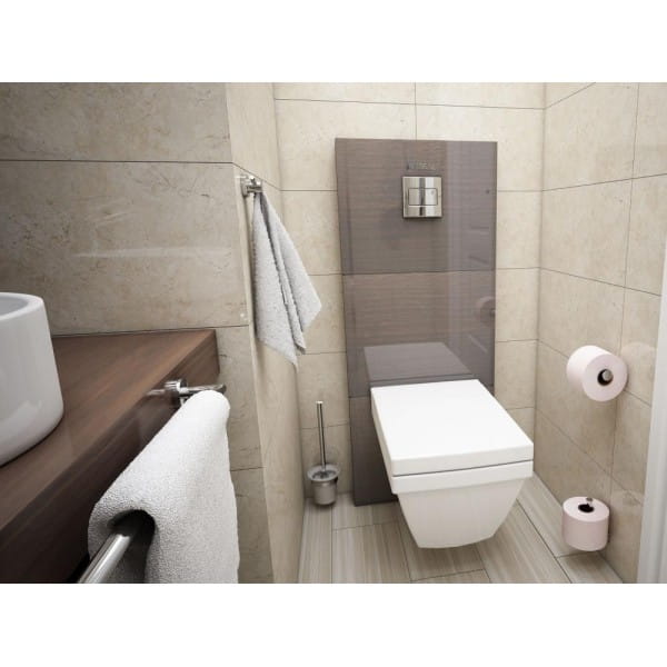 Pojemnik szczotki wykonany został z mrożonego szkła (szkło matowe), co nadaje całości eleganckiego wyglądu i podkreśla minimalistyczny charakter produktu. Szczotka doskonale komponuje się z pozostałymi elementami z serii NORWEGIAN, tworząc spójną i nowoczesną aranżację łazienki.