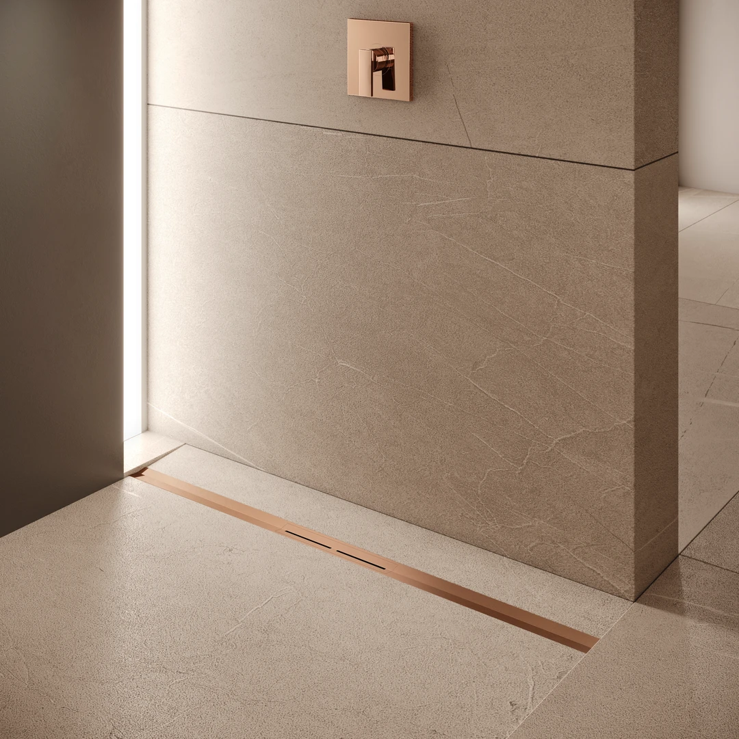 - Profil prysznicowy i obudowa profilu wykonane ze stali nierdzewnej, materiał 1.4301 (304) z kolorową powłoką PVD