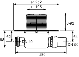 - z dopływem bocznym DN 40 łącznie z korkiem