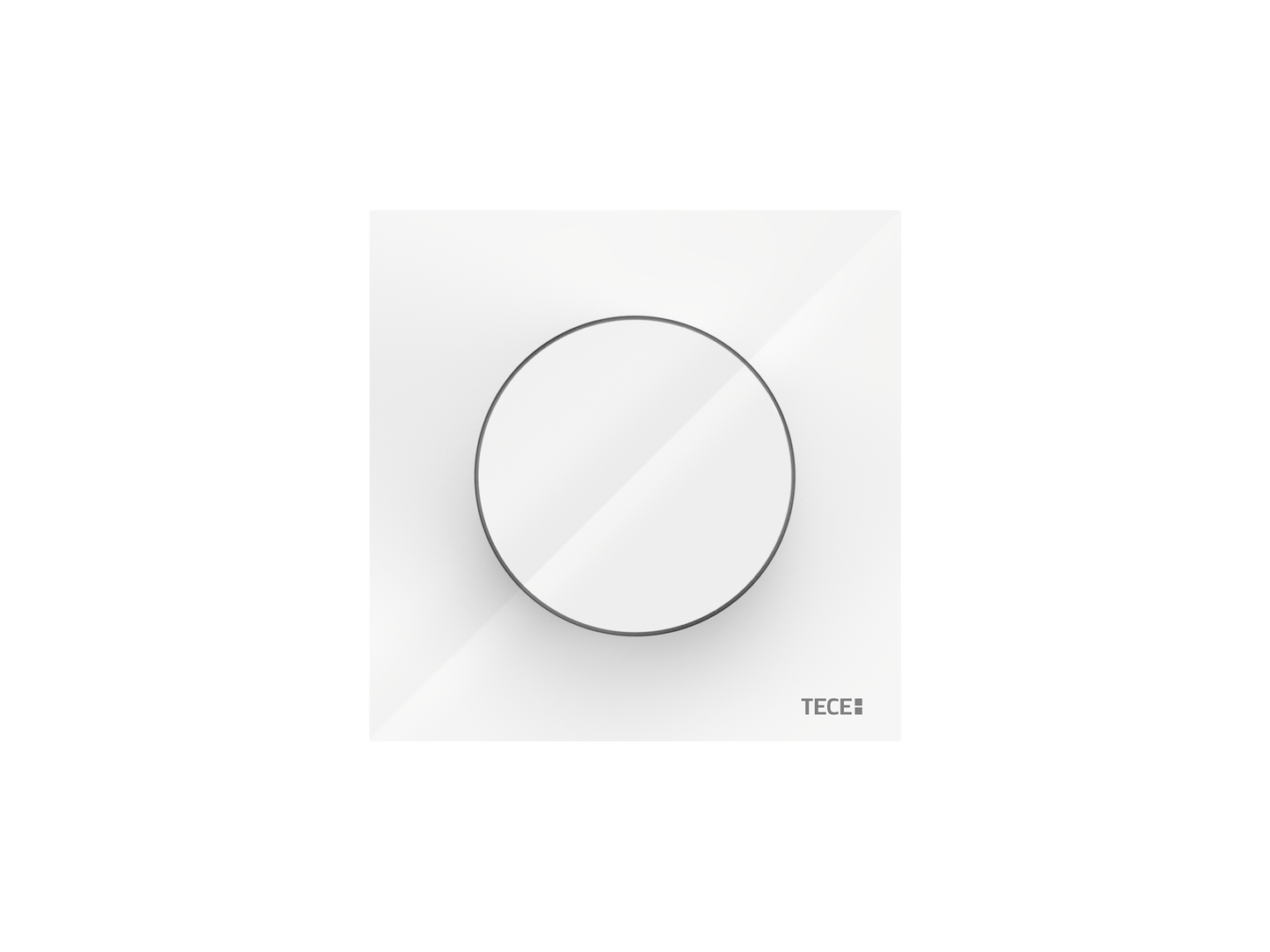 TECE TECEflushpoint przycisk spłukujący z tworzywa, spłukiwanie jedną ilością wody, okrągła obudowa przycisku, biały połysk
