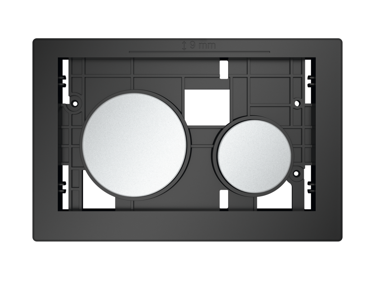 Element uruchamiający z przyciskami spłukującymi TECEloop, przeznaczony do spłuczek TECE uruchamianych z przodu lub od góry, do łączenia z osłoną systemu modułowego TECEloop.