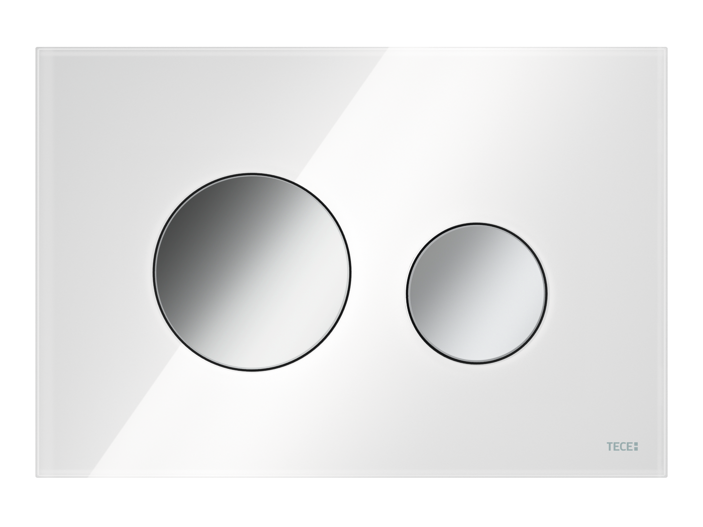 TECE TECEloop przycisk spłukujący do WC ze szkła, spłukiwanie dwoma ilościami wody, szkło białe połysk, przyciski chrom połysk
