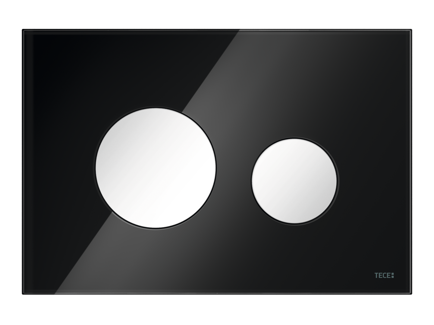 TECE TECEloop przycisk spłukujący do WC ze szkła, spłukiwanie dwoma ilościami wody, szkło czarne połysk, przyciski białe połysk