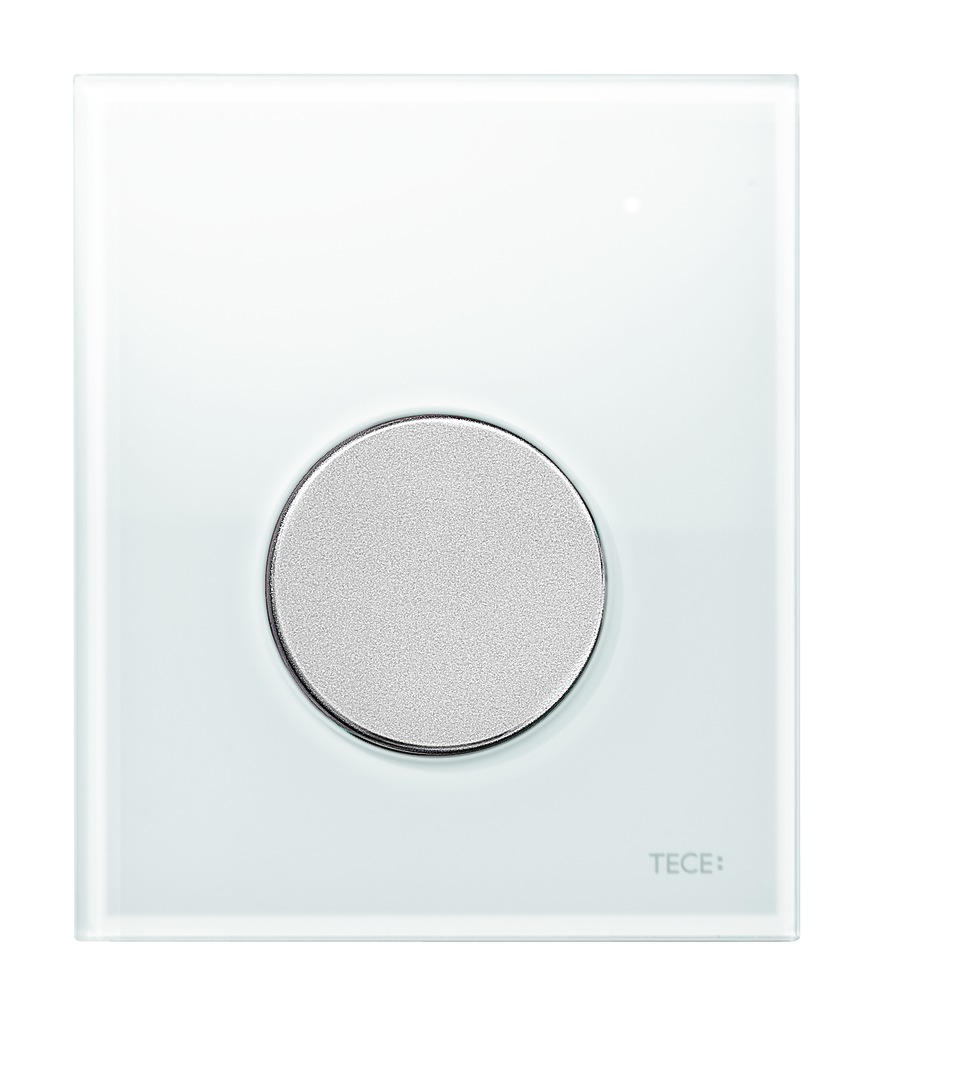 TECE TECEloop przycisk spłukujący do pisuaru U 1 z kartuszem, szkło, szkło białe połysk, przycisk chrom matowy