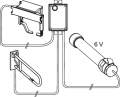 TECEplanus elektroniczny mechanizm spłukujący do poręczy z zamontowanym przewodowym przyciskiem spłukującym, zasilanie bateria 6 V