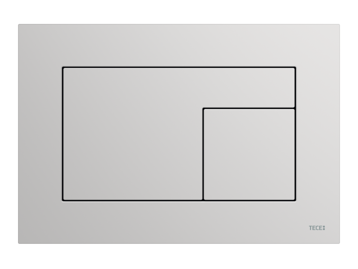 Przycisk spłukujący do spłuczek TECE uruchamiany z przodu lub od góry. Bardzo płaski przycisk spłukujący z powierzchnią FENIX NTM (FENIX® firmy Arpa Industriale). Powierzchnia dotykowa Matte Soft zapobiegająca zostawaniu odcisków palców. Przyciski spłukujące z gumowymi podkładkami, z drążkami uruchamiającymi i materiałami montażowymi. Odpowiedni do montażu w zabudowie mokrej w połączeniu z ramką montażową do WC i ramką dystansową. Kompatybilny z płytką maskującą z koszem na kostki czyszczące.