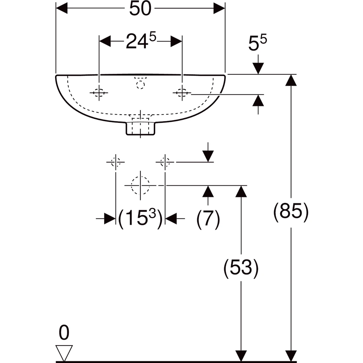 Możliwość połączenia z półpostumentem Zakres dostawy: Umywalka