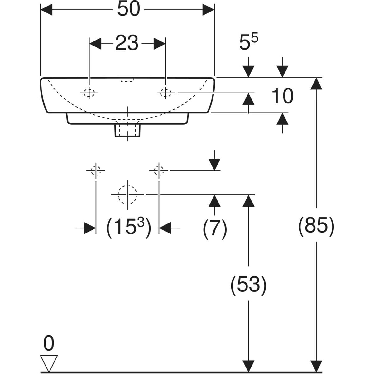 UMYWALKA KOMPAKTOWA Z PRZELEWEM SELNOVA SQUARE 50x42 GEBERIT