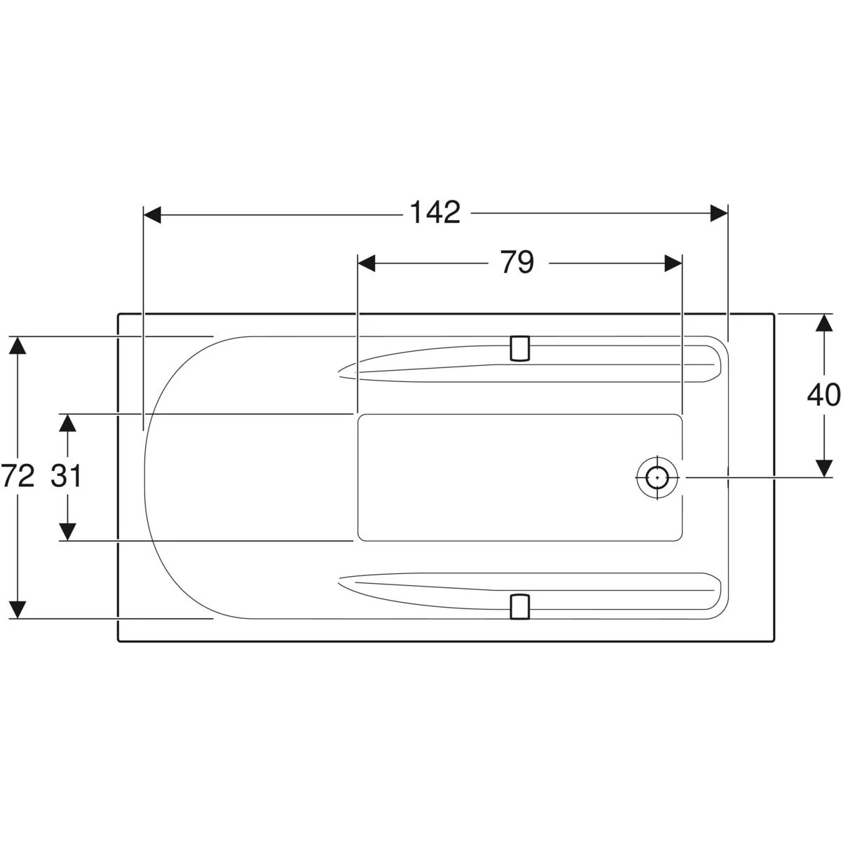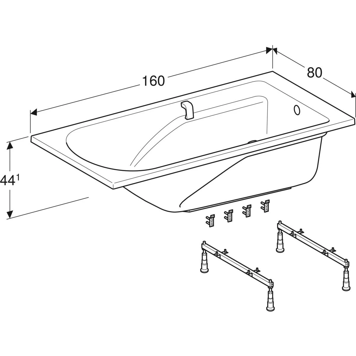 Do montażu w połączeniu z nogami montażowymi lub wspornikami wanny Charakterystyka: Z uchwytem