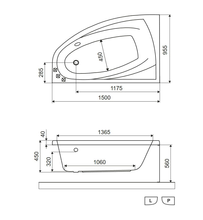 - Strona wanny: lewa