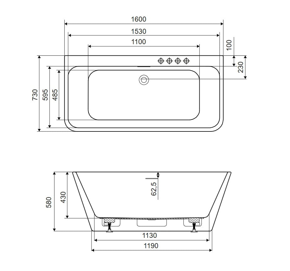 Wykonana jest ze 100% akrylu sanitarnego. Występuje w 3 rozmiarach 150, 160 i 170 cm. Wanna ze zintegrowaną obudową dodatkowo wzmocniona powierzchnia odkładcza, która umożliwia zamontowanie baterii wannowej. Posiada uniwersalny przelew szczelinowy, syfon z korkiem click-clack w kolorze chrom, w komplecie ze stelażem i nóżkami.