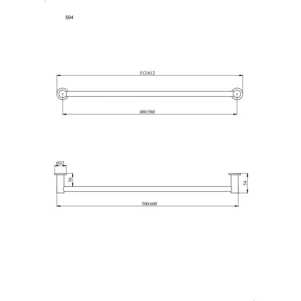 Wymiary: 612 mm (szerokość) x 32 mm (wysokość) x 54 mm (głębokość)