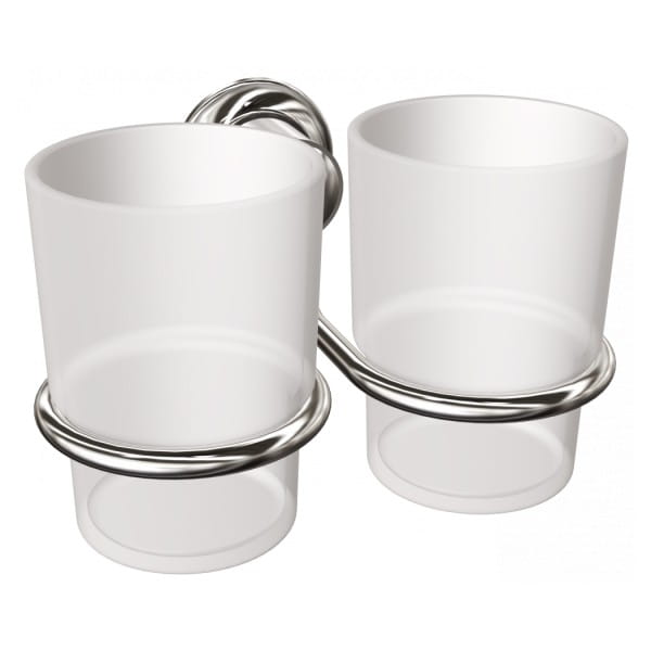 W komplecie znajdują się dwie plastikowe szklanki, idealne na szczoteczki do zębów, pastę czy drobne akcesoria. Ich umiejscowienie na wspólnej podstawie umożliwia wygodny dostęp i utrzymanie czystości. To rozwiązanie szczególnie przydatne w rodzinnych łazienkach.