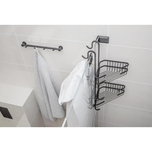 Produkt wykonano z wysokogatunkowego mosiądzu oraz stopów ZnAl, odpornych na korozję – dzięki temu wieszak sprawdzi się doskonale w wilgotnych pomieszczeniach. Całość pokryta jest trwałą, czarną farbą proszkową w odcieniu matowego RAL 9005, która nie tylko wygląda nowocześnie, ale również chroni powierzchnię przed uszkodzeniami i zarysowaniami.