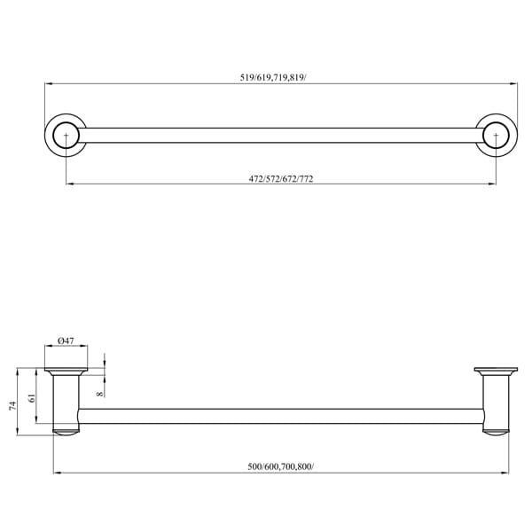 Wymiary: 619 mm (szer.) × 47 mm (wys.) × 74 mm (gł.)