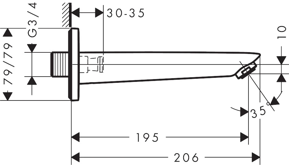Wylewka wannowa do montażu naściennego