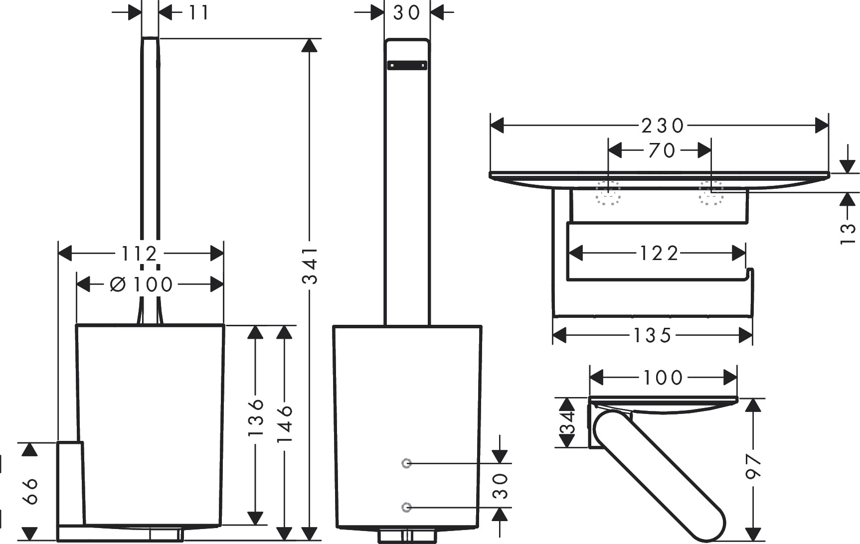 ✅ w składzie: szczotka toaletowa z pojemnikiem, uchwyt na papier toaletowy