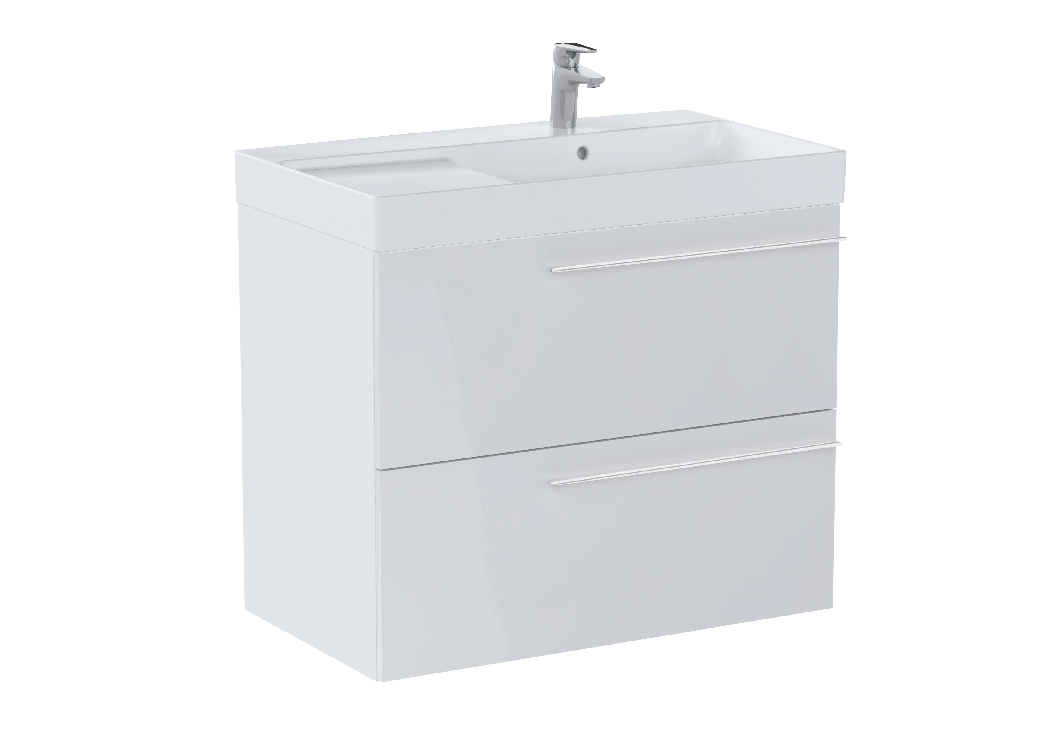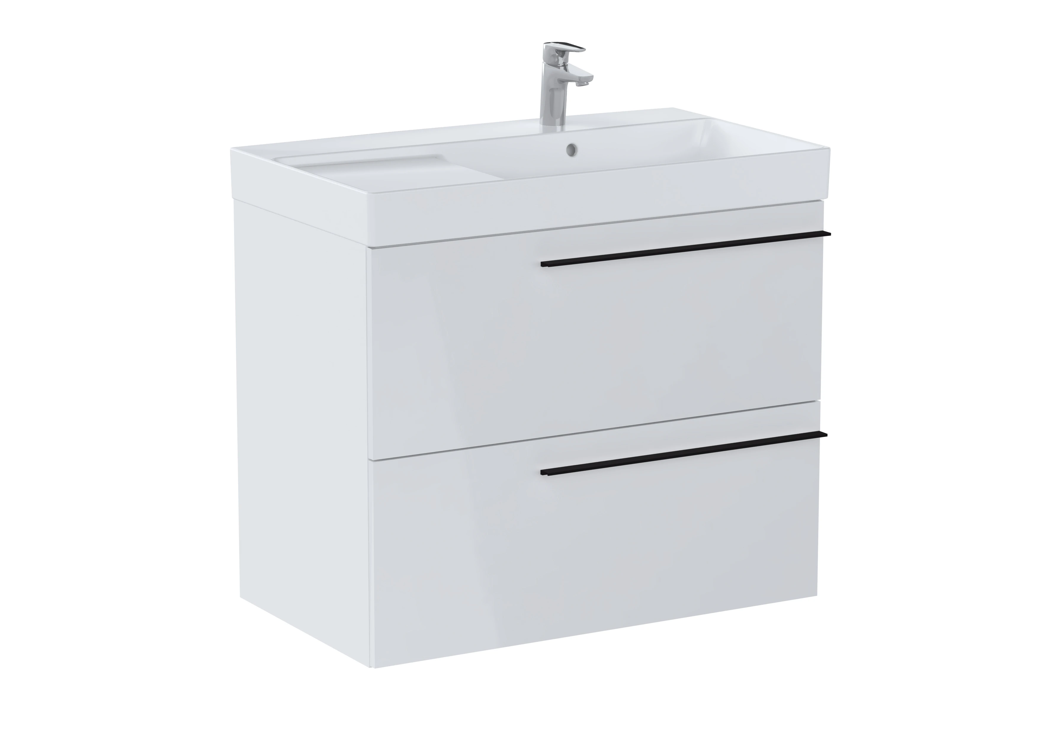 ZESTAW 80CM SZAFKA BIAŁY POŁ. ONA 2-SZUF. + UMYWALKA ONA 80X46 CM ASYMETRYCZNA PRAWA ROCA