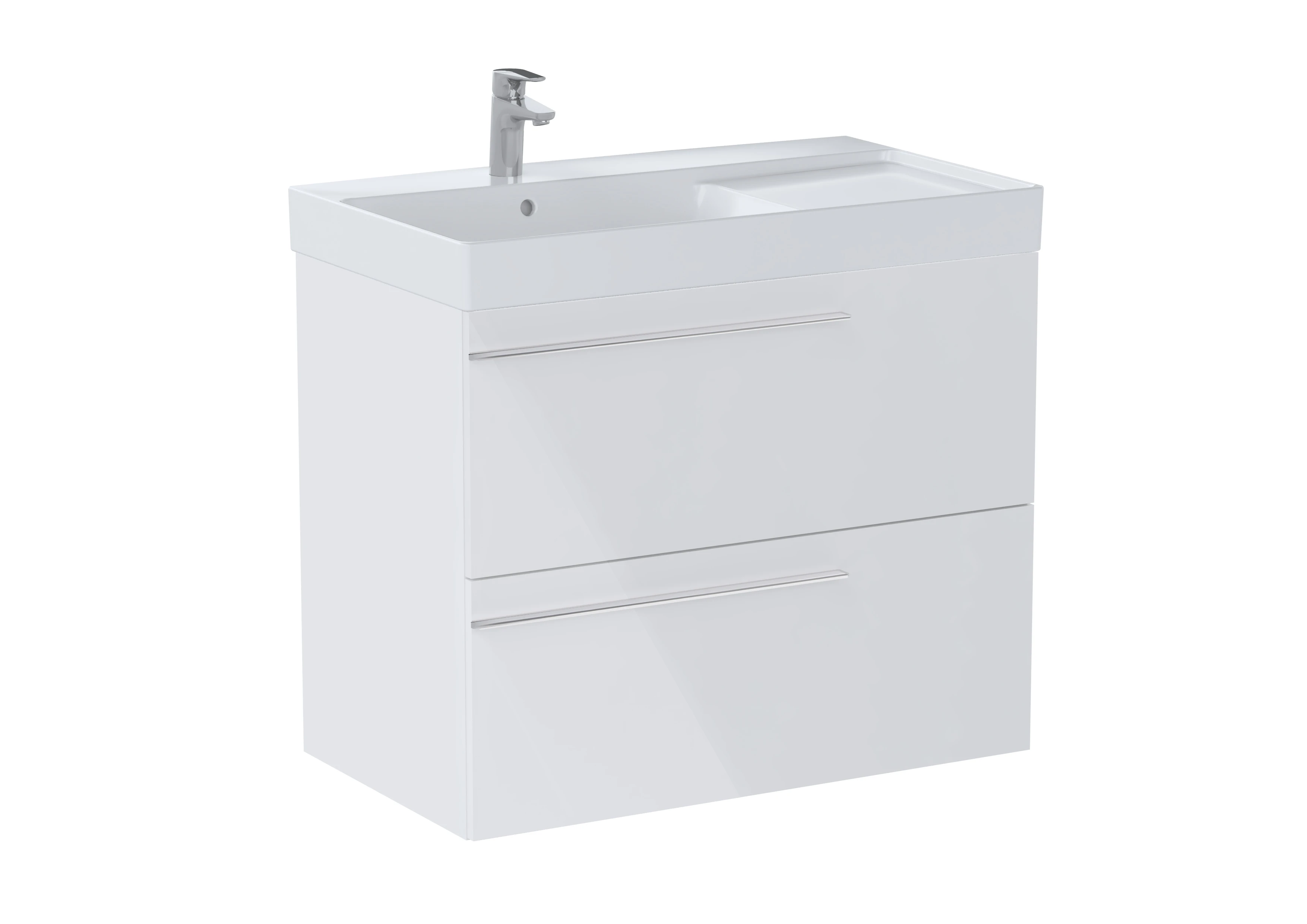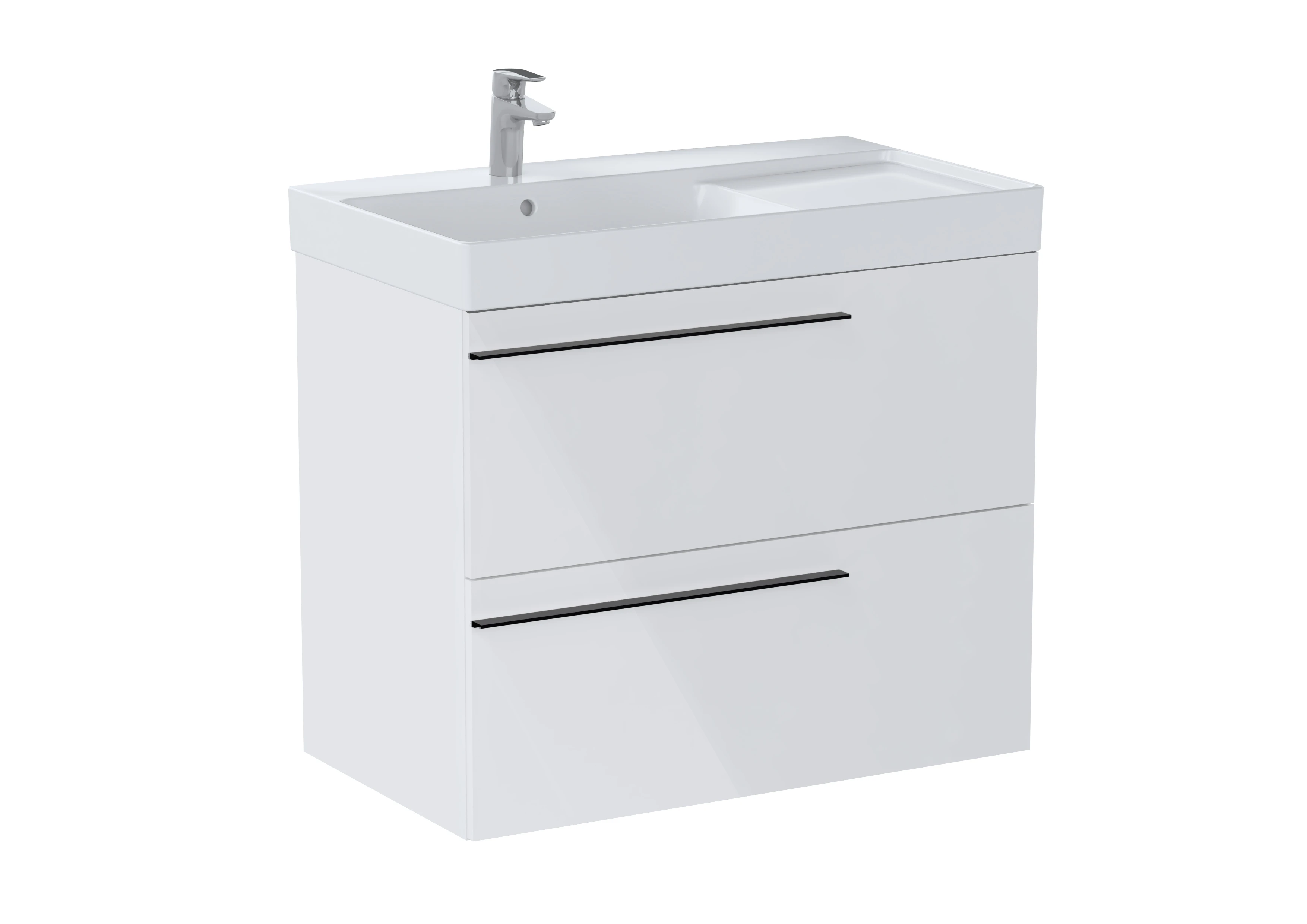 ZESTAW ŁAZIENKOWY ELLA UNIK 2 SZUFLADY 80CM UMYWALKA ASYMETRYCZNA LEWA BIAŁY POŁYSK ROCA