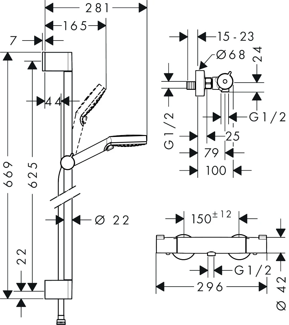 Hansgrohe Crometta Zestaw prysznicowy Vario z termostatem Ecostat 1001 CL i drążkiem 65 cm
