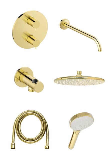 ZESTAW NATRYSKOWY SILHOUET Z BAT. TERMOST. DESZCZ. 25 CM POLEROWANY MOSIĄDZ DAMIXA