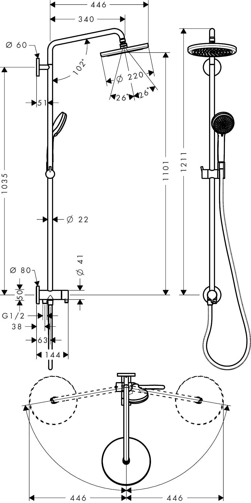 ZESTAW SHOWERPIPE CROMA 220 RENO BEZ BATERII HANSGROHE