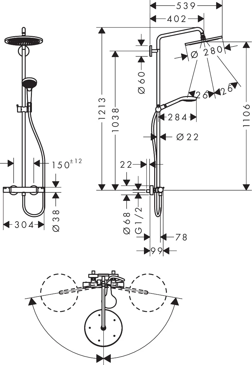 Hansgrohe Croma Select S Komplet prysznicowy 280 1jet z termostatem