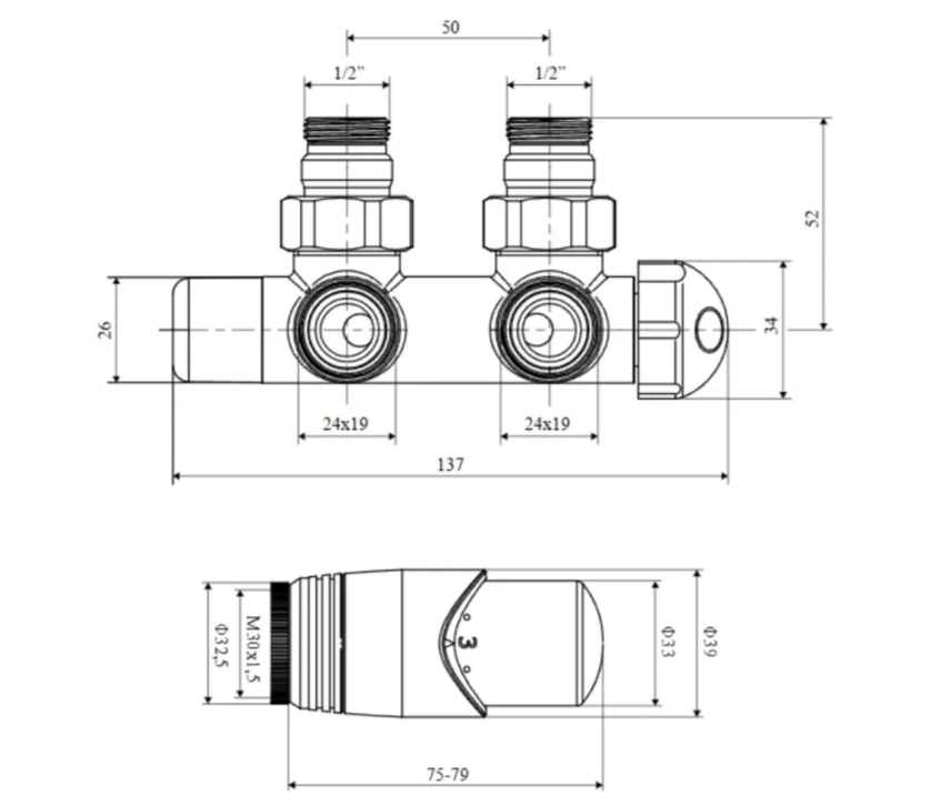 Volaro 2.0to funkcjonalny i elegancki zestaw do instalacji na grzejnikach o podłączeniu dolnym środkowym z rozstawem przyłączy 50mm.Głowica termostatycznapozwala na sterowanie temperaturą i zapewnia wysoki komfort użytkowania. Wszystkie elementy zestawu są dopasowane kolorystycznie i tworzą spójne połączenie z kolorami grzejników Excellent. Zestaw dostosowany do instalacji z grzejnikami o podłączeniu GZ 1/2". W zestawie znajdują się adaptery do montażu zarówno na rury PEX⌀ 16x2 mm oraz na rury miedziane⌀ 15 mm.